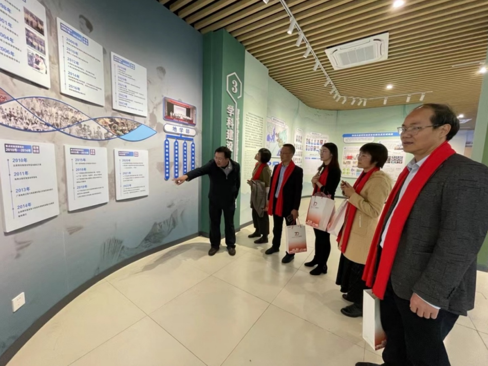 △2023年12月29日,校党委副书记侯代忠参观地理学展示馆,胡宝清院长、黄胜敏书记陪同