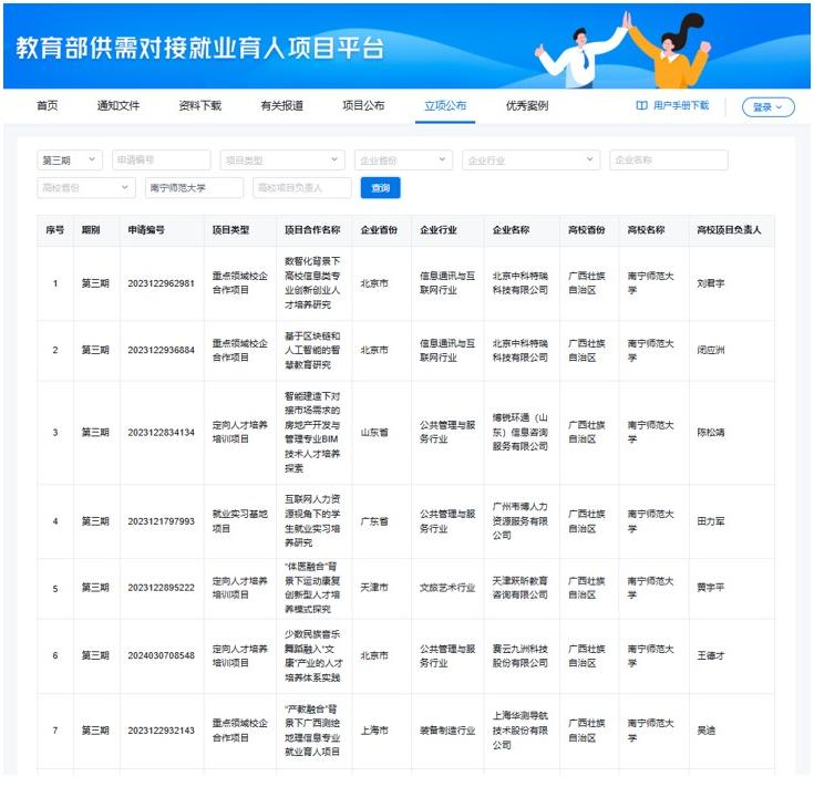 6月14日,教育部高校学生司(高校毕业生就业服务司)发布《关于公布教育部第三期供需对接就业育人项目立项名单的通知》(教就业司函〔2024〕23号),问鼎手机版(中国)共获批7项,其中重点领域校企合作项目3项,定向人才培养培训项目3项,就业实习基地项目1项,实现该项目获批数量新突破。