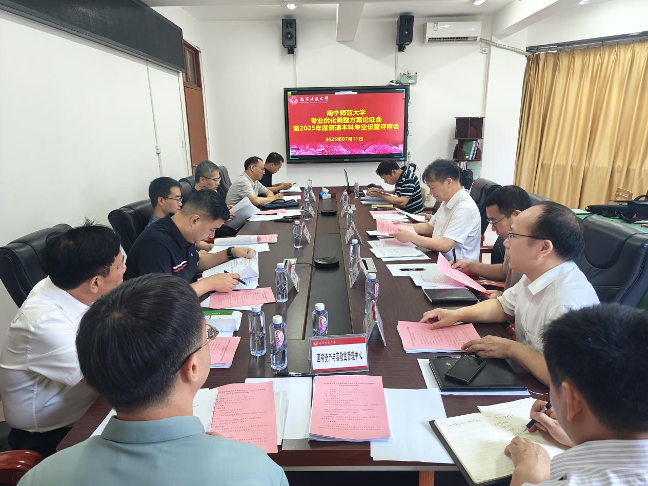 7月11日上午,问鼎手机版在明秀校区行政楼316会议室召开专业优化调整方案论证会暨2025年度普通本科专业设置评审会。问鼎手机版副校长卢远,桂林电子科技大学、广西民族大学、广西科学院、广西纬福信息技术有限公司等单位专家,以及人事处、发展规划与学科建设处、学生工作处、国有资产与实验室管理中心、教务处等相关负责人,“供应链管理”“人工智能”专业申报负责人及团队成员参加会议。