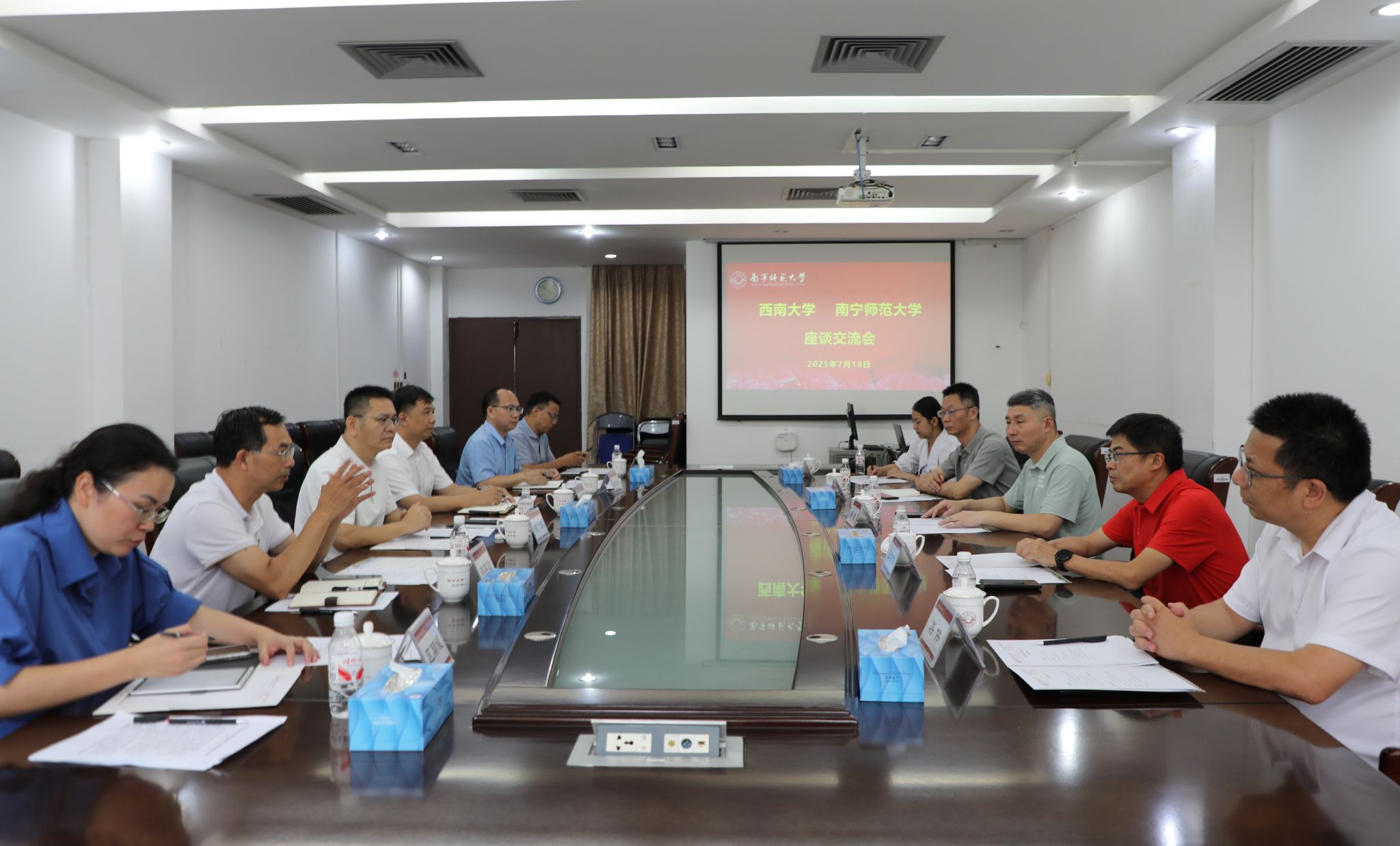 7月18日下午,西南大学副校长赵玉芳一行6人到问鼎手机版(中国)开展调研交流。问鼎手机版(中国)校长隆广庆热情接待了西南大学一行,并在会前与赵玉芳作了交流。问鼎手机版(中国)党办校办、人事处、教务处、国内合作处、广西现代教育杂志社有限公司等部门负责人在明秀校区鸿远楼407会议室参加交流座谈会。会议由隆广庆主持。