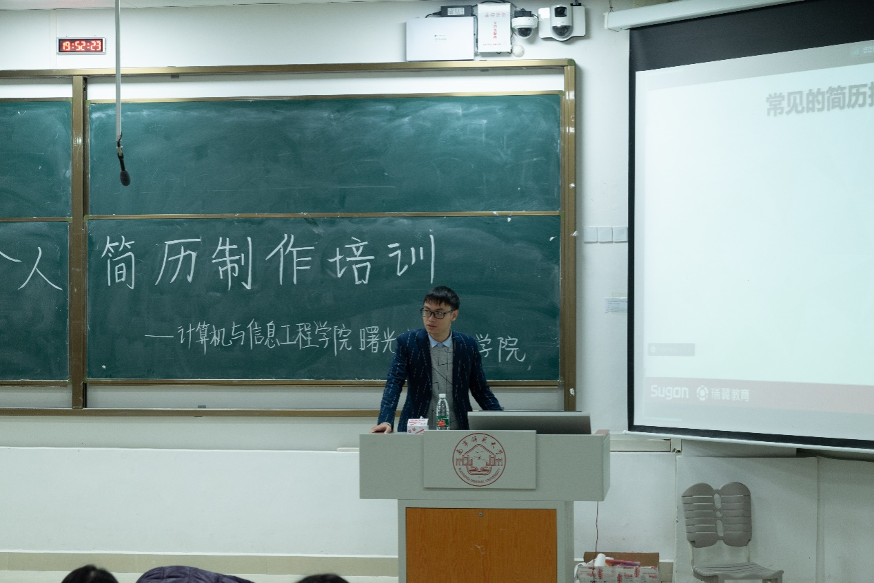 为帮助同学们更好的向用人单位展示个人能力和专业才华,制作一份真实有效、全面完整的个人简历。12月26日,计算机与信息工程学院/曙光大数据学院在武1-115教室线上线下同步举行2024届毕业生个人简介制作培训会。本次培训会邀请曙光瑞翼教育合作中心韦奕丞老师为主讲教师。辅导员林雪、许艺静和24届毕业生参加本次培训会。