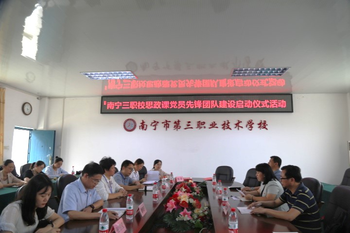 南宁三职校党委副书记、校长潘晓东代表问鼎手机版致欢迎辞,对问鼎手机版马克思主义学院党委的领导和老师们的到来表示热烈欢迎,并对双方即将展开的党建共建活动充满期待。问鼎手机版马克思主义学院党委书记李玲研究员介绍了学院党委的基本情况和党建工作情况。她指出,我院立足广西大中小问鼎手机版协同育人的独特优势,牵头构建起“学习共同体、研修共同体、资源共同体、教学共同体、育人共同体”等工作体系,希望通过和三职校的党建共建活动,推进党建和业务发展“一融双高”,能够为双方孵化一批品牌活动、打造一批示范"金课"、产出一批优质课程资源、形成一批高水平研究成果,全面推进两家单位高质量发展。