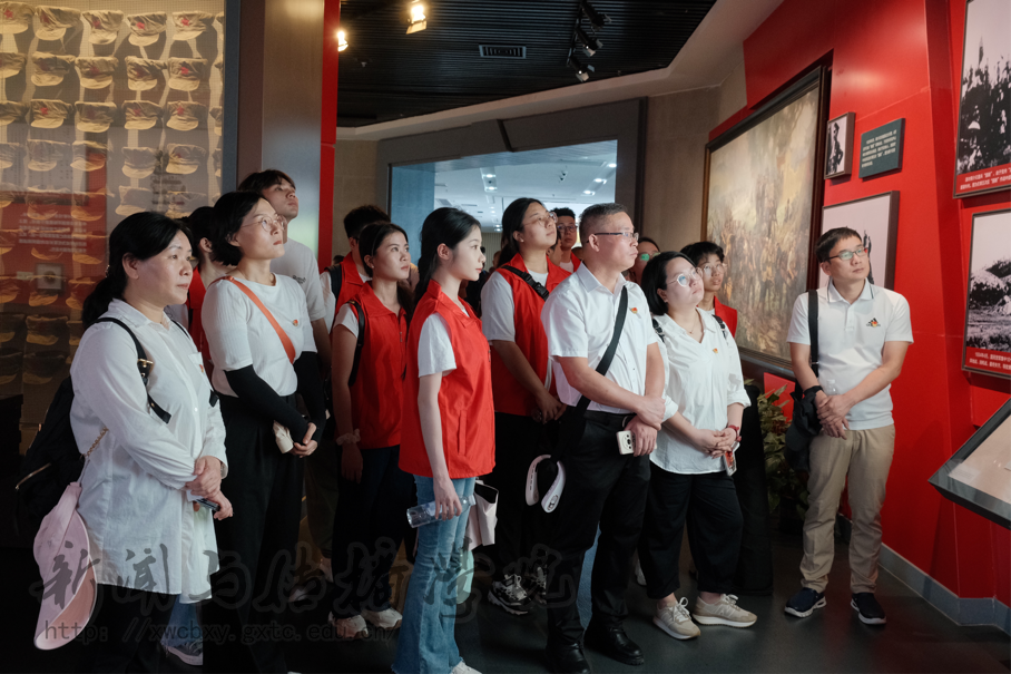 7月6日,新闻与传播学院红色研学团队举行本次“红色烽火 青春传承”主题研学活动开幕式。当天上午,在新闻与传播学院党委书记聂卉的带领下,师生们怀揣着对革命先烈的无限敬仰,来到了桂林市全州县红军长征湘江战役纪念馆开展红色研学活动。