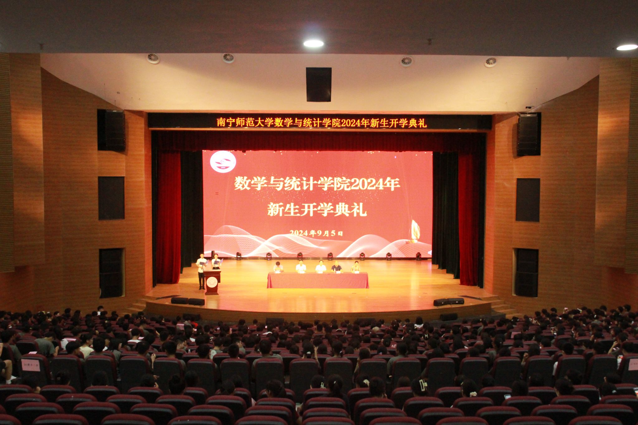 9月5日晚上,数学与统计学院在音舞楼千人演播厅举行2024级开学典礼。该院领导班子、各教研室主任、行政教辅老师、辅导员老师及2024级各班班主任出席本次典礼,2024级全体新生参加此次典礼。