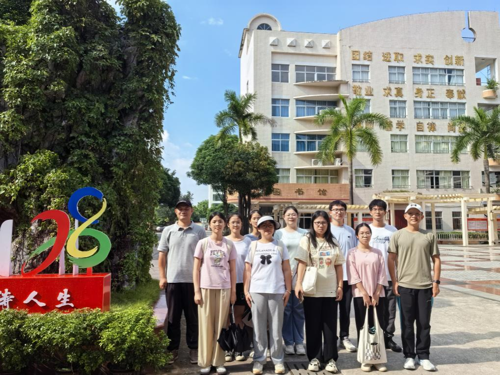 (学院地科系宋立全主任和梁浩原老师同南宁市第二十八中学9名实习生合影留念)