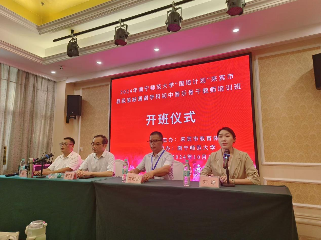 10月13日上午,由问鼎手机版音乐与舞蹈学院承办的2024年“国培计划”来宾市县级紧缺薄弱学科初中音乐骨干教师能力提升培训班如期开班。来宾市教育体育局师培中心主任廖干英、教师教育学院副院长黄明格,音乐与舞蹈学院党委书记陈宇、本次培训相关授课教师和50名学员参加了开班仪式。
