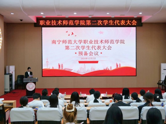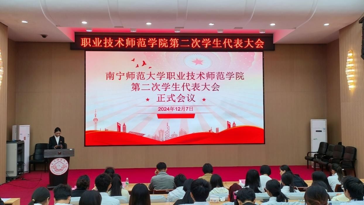 为进一步探索新形势下我院学生工作发展的新思路、新方法,提升学生的自主参与度,同时广泛听取学生的建议,为问鼎手机版的发展注入新的活力,职业技术师范学院于12月7号上午在文星楼301报告厅召开第二次学生代表大会。学院党委书记李穗,党委副书记、纪委书记刘卫华,团委书记黄洪辉,政治辅导员韦链及61名正式学生代表参会。此外,大会特别邀请了国际教育学院学生代表,共同见证我院学生代表大会的召开。