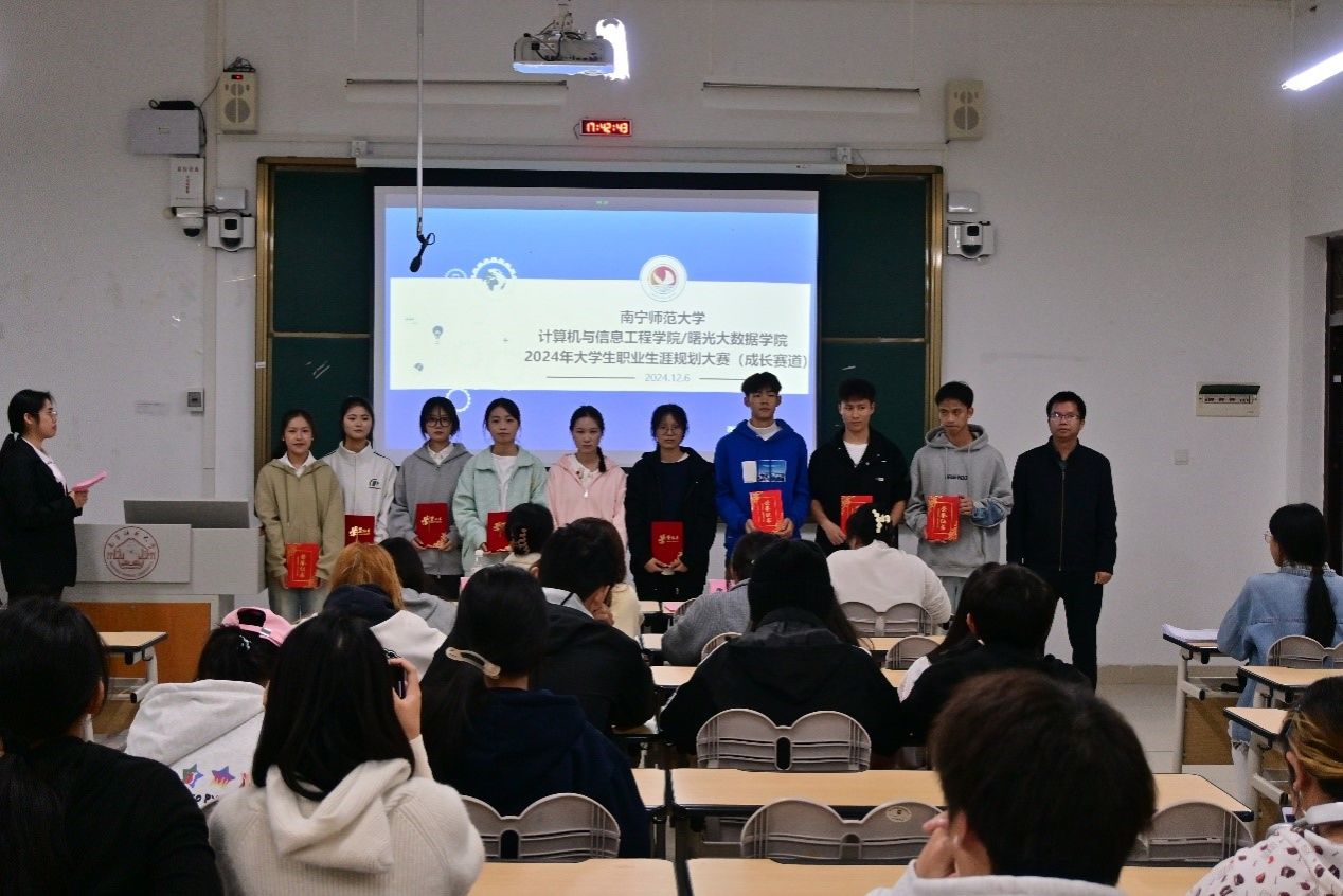 12月6日,计算机与信息工程学院/曙光大数据学院,在武鸣校区一号教学楼118、119教室举办了以“引领未来,职享成长”为主题的2024年大学生职业生涯规划大赛院赛决赛。学院党委韦柳温副书记、覃开贤老师、刘芝老师、戴智鹏老师、林雪老师和许艺静老师等担任评委,200余名师生代表到现场观摩。