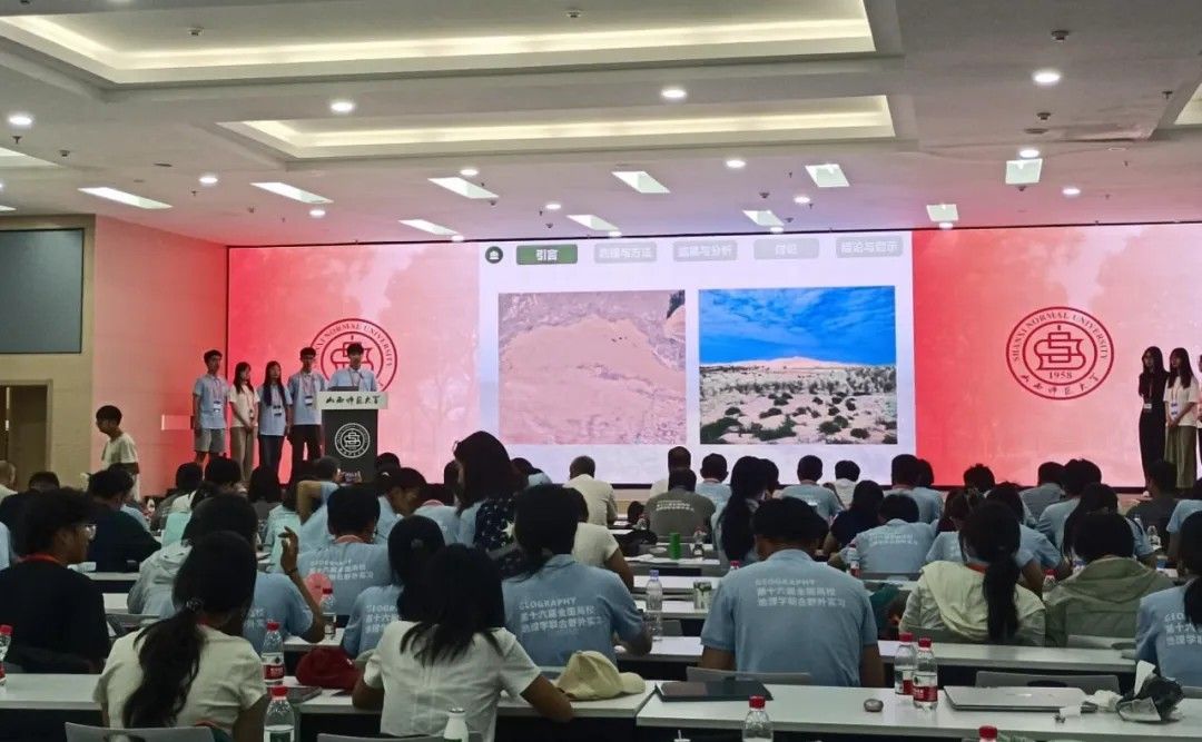 在地理实习总结汇报会上,何纳德代表小组进行主题汇报,充分展现了此次地理实践学习成果与思考深度,也展示了我院学子的地理学科学素养。