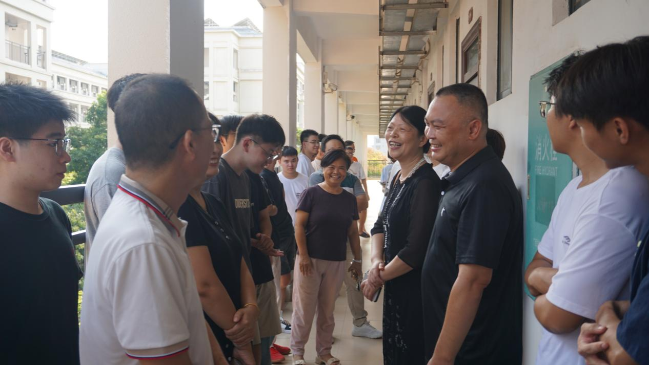 为切实了解新生到校情况,帮助新生快速适应校园生活,环境与生命科学学院于9月6日下午在武鸣校区松园公寓开展新生宿舍走访工作。学院院长何英姿、党委副书记(主持党委工作)韦东林、党委副书记刘启满、副院长张新英、副院长张忠华、学工办老师、2025级各班班主任深入新生宿舍进行走访,为进入校园的新生送上关怀。