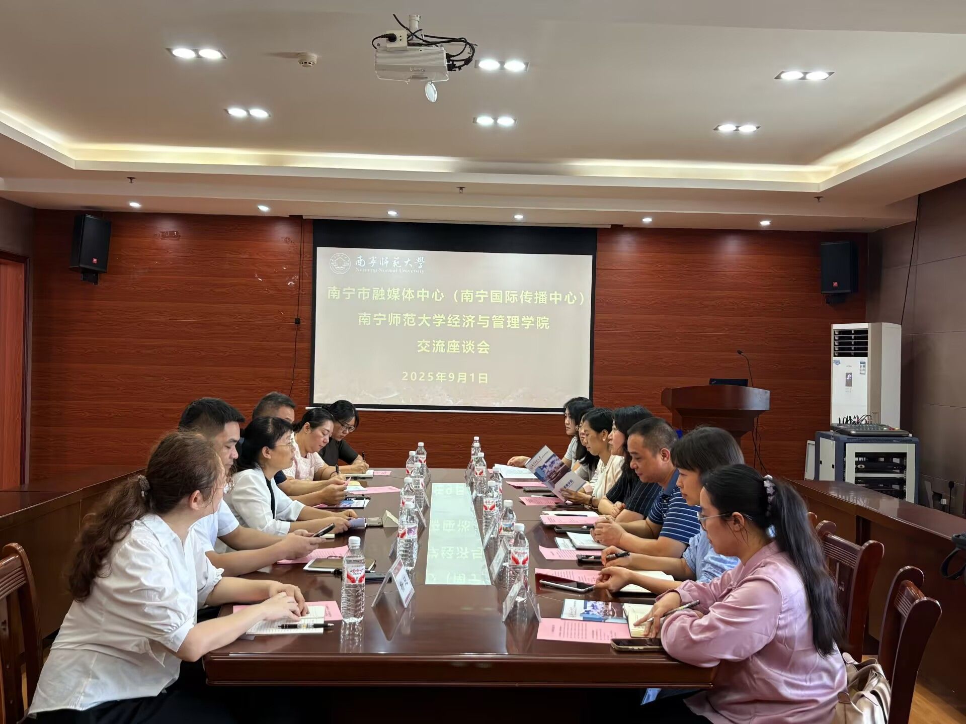 为深化产教融合、推动校企资源优势互补,9 月 1 日,南宁市融媒体中心副总编辑、南宁国际传播中心主任张婷带领核心团队一行7人到访经济与管理学院开展校企合作交流。经济与管理学院院长何玲玲、党委副书记谢统义、文化产业管理系主任张聪、教师代表参加了座谈。会议由何玲玲院长主持。