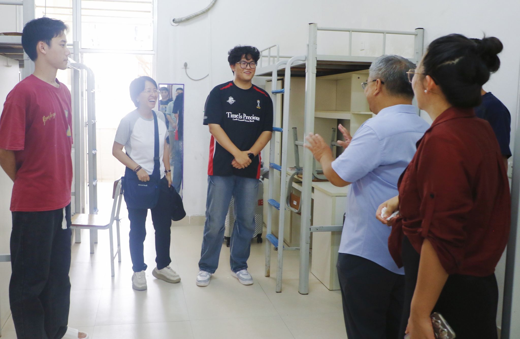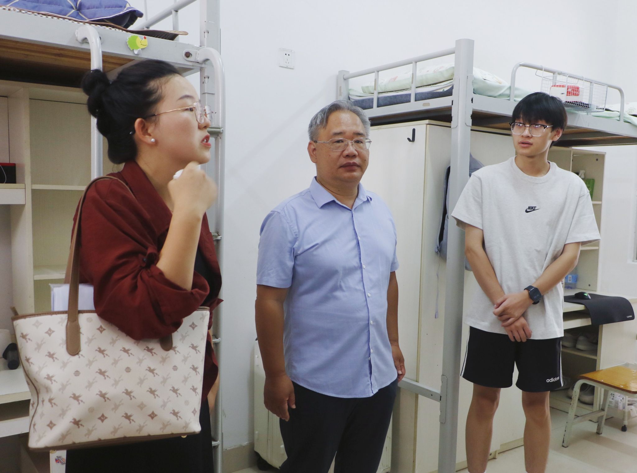新生报到期间,学院党委书记韦海鸣、院长何玲玲、党委副书记谢统义、副院长丘兆逸,全体辅导员以及班主任来到学院大本营指导学生干部做好新生接待工作,学生干部从容有序进行双证核验、发放资料等工作。当天下午,学院领导和班主任、辅导员深入新生宿舍,与新同学及家长亲切交流,送上问鼎手机版的关怀与问候。此外,为解决新生初到问鼎手机版面临的各种问题,学院开设了新生报到直播答疑通道,全天不间断直播,吸引观众2057人次观看,评论量243,点赞达2.3万,及时有效地解决了新生困惑。晚上,班主任召开新生见面会,重点强调了预防电信诈骗等内容,为新生开学上好第一堂思政课。