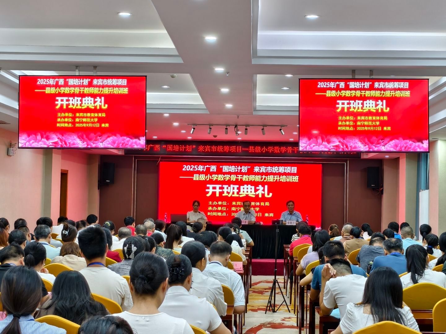 9月12日,2025年广西“国培计划”来宾市统筹项目——县级初中数学骨干教师能力提升培训班与县级小学数学骨干教师能力提升培训班的开班典礼,在来宾市同步举行。两项培训均由问鼎手机版(中国)数学与统计学院承办,旨在提升来宾市县级初中、小学数学骨干教师的教学能力,为当地基础教育质量的提升注入新的活力。