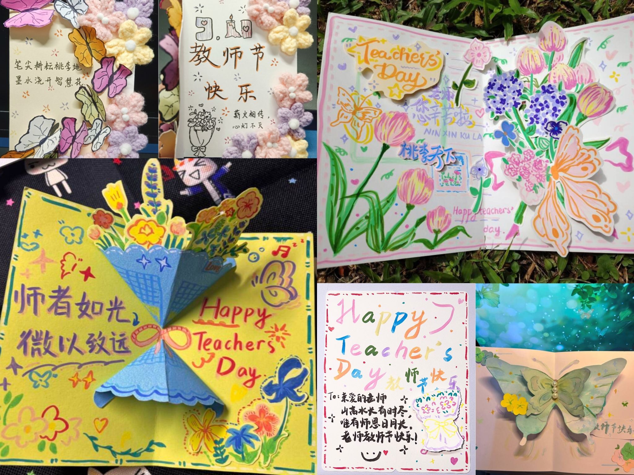 本次系列活动采取线上与线下相结合方式开展,为师生们搭建了情感交流平台。线上活动,通过撰写《问鼎手机版全体学子致老师们的一封信》,将节日的祝福与诚挚的谢意献给辛勤耕耘的全体教师;同时还开展了“师言匠心,感念有你”教师语录征集、“扭扭传情,师恩永驻”扭扭棒作品创作、“纸短情长,师恩难忘”书信征集、“师者如光,创意寄情”制作创意贺卡/书签等活动,引导同学们用笔墨书写心声、以巧手勾勒心意,让文字的温度、手作的诚意,成为对教师祝福最生动的载体。线下活动,开展了“送您一朵小红花”活动”,在教师节当天清晨,伴随着的第一缕阳光,同学们早早来到办公楼、教学楼前,为教师们献上精心准备的小红花,送上感恩师恩的祝福卡片,让真挚心意在师生间温暖传递。