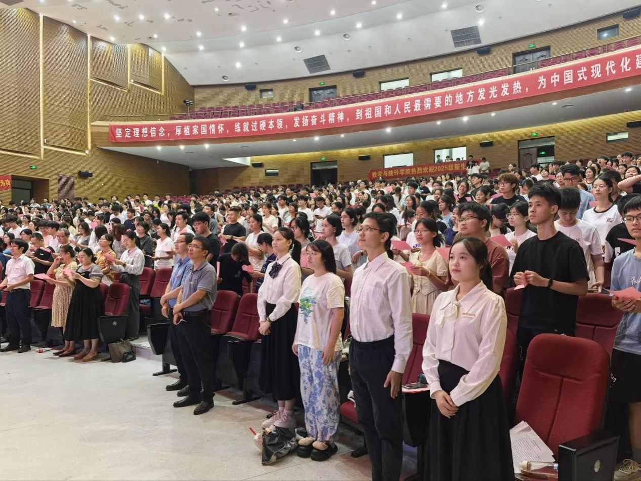 为明确新学期目标与方向,凝聚师生共识,同时欢迎新生融入集体,9月11日,数学与统计学院在音舞楼千人演播厅顺利举行2025级新生开学典礼。学院领导班子、各系主任、各教研室主任、研究生导师、行政教辅老师以及2025级各班班主任出席本次典礼,2025级新生参加此次典礼。