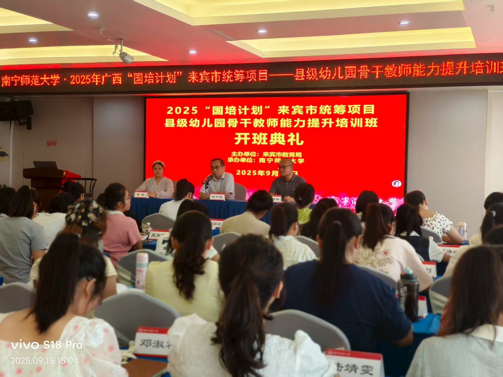 9月15日,由来宾市统筹规划、问鼎手机版教育科学学院承办的2025年“国培计划”项目--县级幼儿园骨干教师能力提升培训班在来宾市顺利开班。