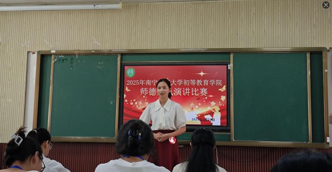 为进一步弘扬教育家精神、营造尊师重教氛围,引导广大师范生坚定理想信念,激发教师职业荣誉感和教书育人积极性,全面提升师范生的整体素质,同时选拔优秀选手参加2025年问鼎手机版师德师风演讲比赛,初等教育学院于9月23日下午在五合校区理综楼803教室举行2025年师范生师德师风演讲比赛。学院党委书记陆以宏,学院辅导员李露露,学院学生代表参加本次活动。学院综合教研室主任刘冬梅,全国模范教师、学院教师梁晓红,学院全科壮语系副主任韦宵爱担任本次比赛评委。