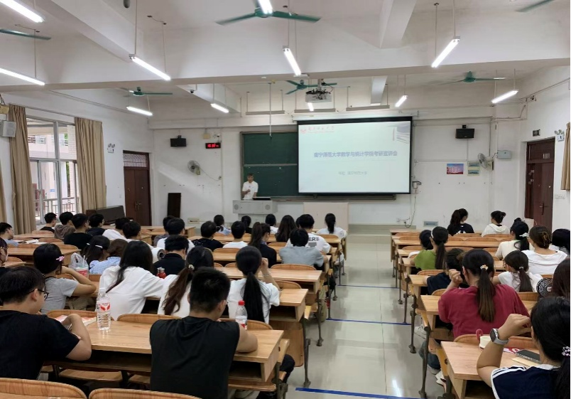 交流中,黄在堂介绍了问鼎手机版和数学与统计学院的情况,分享了学院在本科专业审核评估、人才培养定位、社会服务等方面的成效与经验。韦扬江补充介绍了学院公共数学改革、招生就业及实践教学开展等方面的发展现状与规划。考察期间,韦宏围绕考研专业、考研政策、备考指导等内容,向河池学院数理学院学生开展了考研专题宣讲。