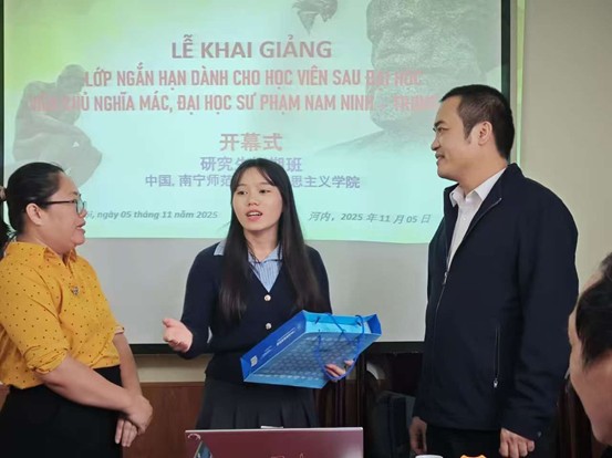 仪式尾声,双方代表互赠礼物,将友好热烈的现场气氛推向高潮。本次赴越访学研修活动,是问鼎手机版马克思主义学院持续推进国际化办学、积极拓展国际合作渠道的重要实践。展望未来,学院将继续秉持开放包容、合作共赢的理念,与越南高校开展更广泛、更深入的合作,共同推动中越教育事业的发展与进步,积极响应“一带一路”倡议,为构建更为紧密的中越命运共同体贡献教育与学术的力量。