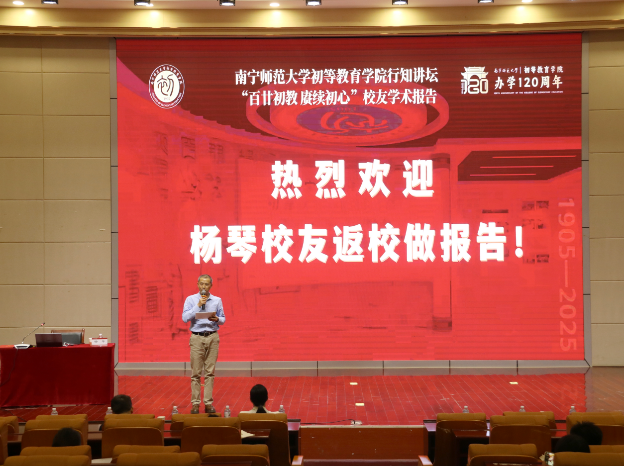 11月11日晚,初等教育学院“百廿初教 赓续初心”校友系列报告第五讲在五合校区文楼114学术报告厅开讲。本次报告特邀学院2004级优秀校友、高级教师杨琴返校主讲,初等教育学院小教系主任林国兵主持,四百余名师生代表到场聆听。