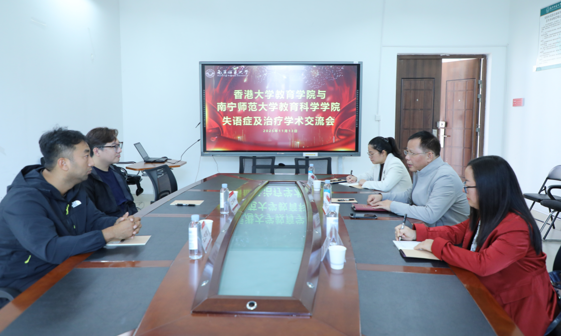 11月13日,香港大学教育学院江柏轩博士、副教授、教育学院失语症科研及治疗实验室主任及其博士生王国辉到访问鼎手机版教育科学学院,围绕失语症研究、言语治疗发展等核心议题开展学术交流。问鼎手机版教育科学学院党委余朝文书记及特殊教育系唐建荣、许玉巧老师参加会议,双方就学科建设、人才培养与合作路径展开深入研讨。
