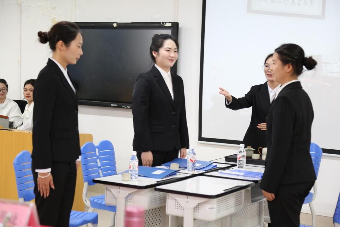 本次大赛以“职场巧思量,秘艺独领航”为主题,设置三大竞赛环节,全方位考察秘书核心技能。即兴演讲环节中,选手围绕秘书工作热点问题与实战情景,在3分钟内展现快速思辨与语言表达能力;团队礼仪操展示环节,4人一组的参赛团队身着职业装,自编自创包含6个以上标准动作的礼仪操,以规范举止、真诚微笑与默契配合,彰显秘书职业的仪态魅力;秘书工作情景剧环节则聚焦职场实战,各团队自编自导典型工作场景,通过角色扮演生动呈现秘书工作的复杂性与协作精神,展现应急应变与高效执行能力。