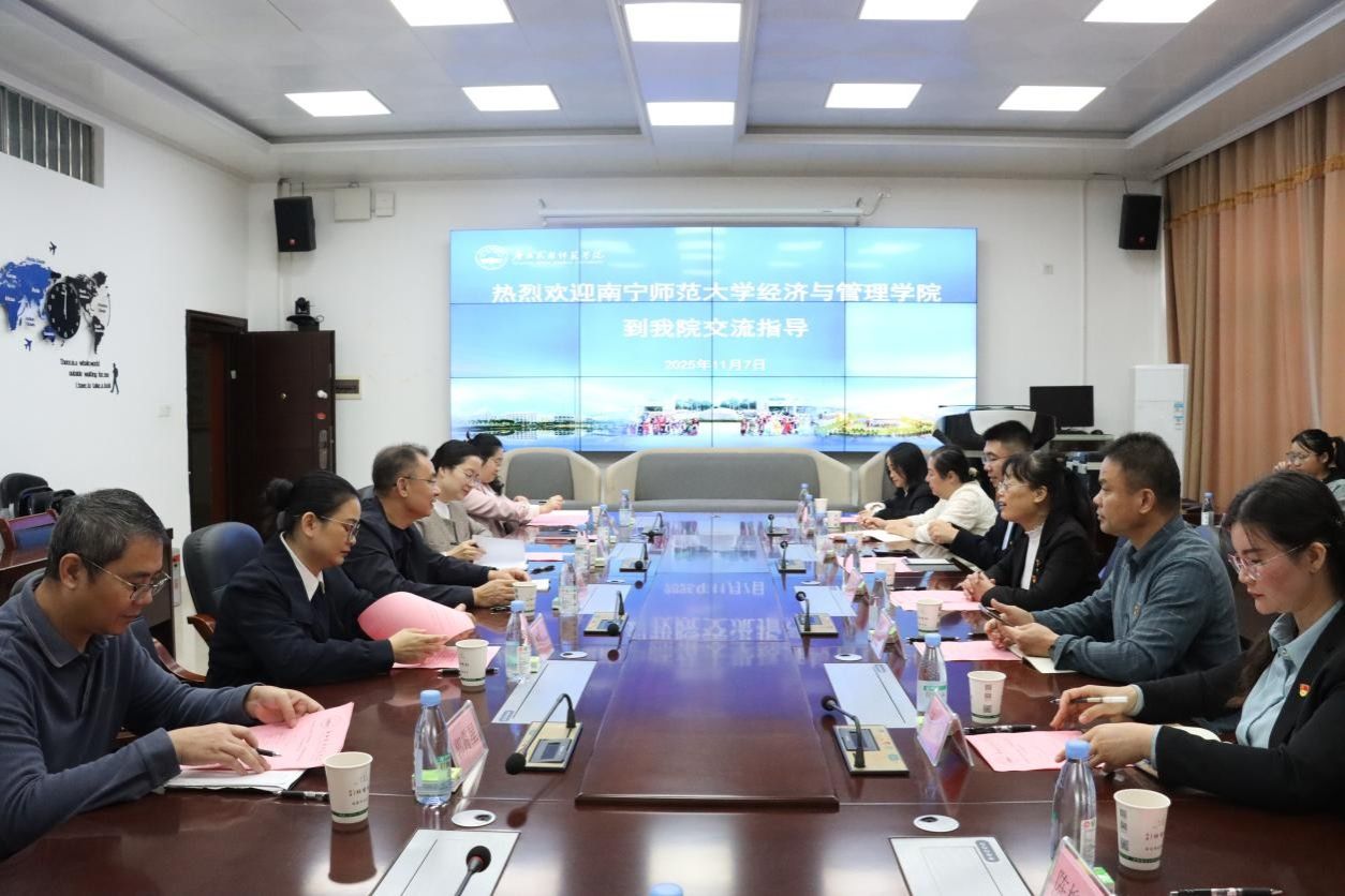 何玲玲院长在总结发言中对广西民族师范学院的倾囊相授表示衷心感谢。她指出,两校渊源深厚,期望未来能进一步加强沟通协作,共同推动育人工作高质量发展。郑振锋副校长也表示,广西民族师范学院愿依托地域与学科特色,与问鼎手机版经济与管理学院深化合作,携手共进。