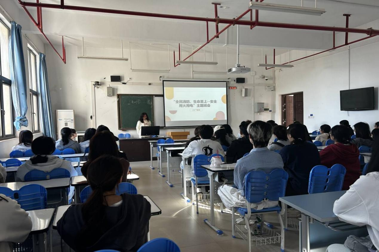 班会上,各班级重点围绕校园用火用电中存在的风险隐患展开讲解,包括违规使用大功率电器、私拉乱接电线、宿舍区域易燃物堆放等问题,引导学生识别常见安全隐患,增强防范意识。23级广告专升本班围绕“校园用火用电风险隐患”“安全用火用电规范”“火灾应急处置方法”三大主题,组织同学们开展消防安全专题学习。23级广电班则聚焦消防知识科普,通过系统讲解全国消防日的设立背景与历史沿革,向同学们普及了消防设施功能、火场自救技巧等基础常识。