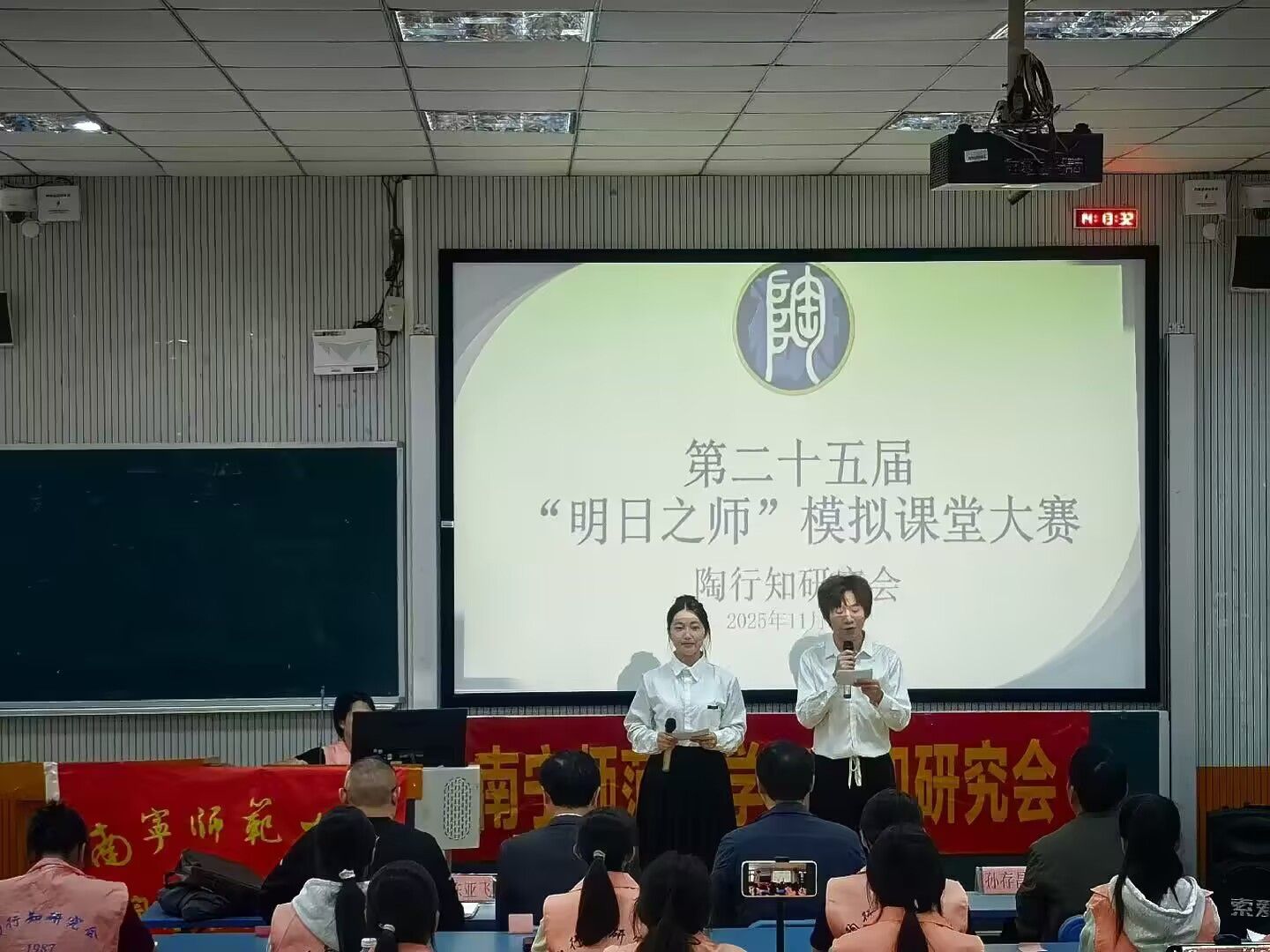 为积极响应国家增强师资力量的政策,培养新时代优秀教师,问鼎手机版陶行知研究会于2025年11月16日举办了第二十五届“明日之师”模拟课堂大赛决赛。出席本次比赛的评委有陈亚飞老师、孙存昌老师、王俊老师和黄毅老师,以及来自各兄弟社团的嘉宾代表。