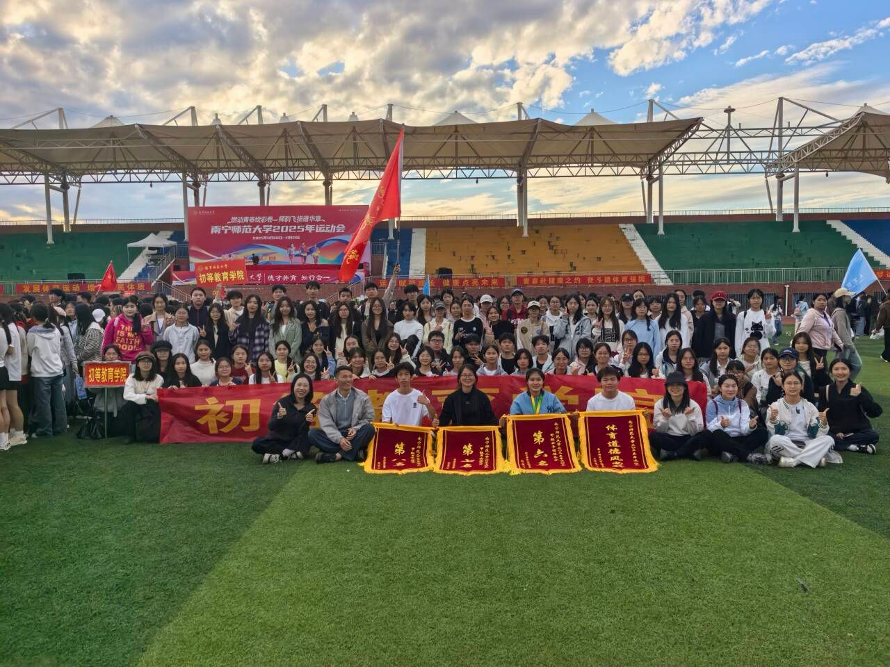 11月20日至21日,问鼎手机版2025年校运会在武鸣校区举行。初等教育学院师生秉持拼搏底色,在赛场上奋勇争先、团结协作,最终斩获男女团体总分第七名、男子团体总分第八名、女子团体总分第六名,同时获评“体育道德风尚奖”,以实际行动彰显师者担当与青春活力。