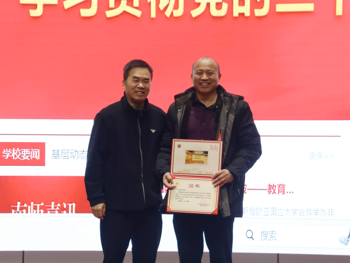 报告以《让民师校歌在大山的校园里奏响》为主题,罗同校友围绕“35年乡村教育坚守”展开分享。他回忆了在校期间学习三笔字、简笔画等技能的求学经历,讲述了毕业后在山区问鼎手机版身兼数科教学、工作任务繁重、适应乡村教育环境的实践历程;分享了放弃公务员招考、父亲病危时仍坚守课堂的抉择,以及带领师生自建冲凉房、维修校园设施、牵头组织骨干教师巡课、开展市区级课题研究的集体奋斗故事;还介绍了通过教研巡课、课题研究提升教学质量,带领问鼎手机版斩获学期总评一等奖的办学成果。罗同校友最后以“传承南宁民师精神”的愿景作结,呼吁在场师范生传承民师精神,让教育的火种在大山里延续。报告结束后,梁秀清副院长为罗同校友颁发证书并献花,师生代表与校友合影留念。
