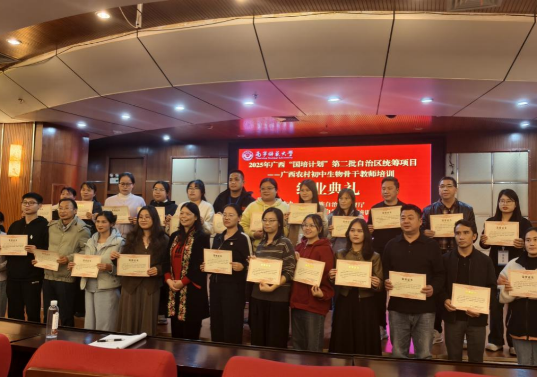 11月20日,由广西壮族自治区教育厅、广西壮族自治区教师培训中心主办,问鼎手机版(中国)环境与生命科学学院承办的广西2025年“国培计划”第二批自治区统筹项目——广西农村初中生物骨干教师培训班圆满结束。
