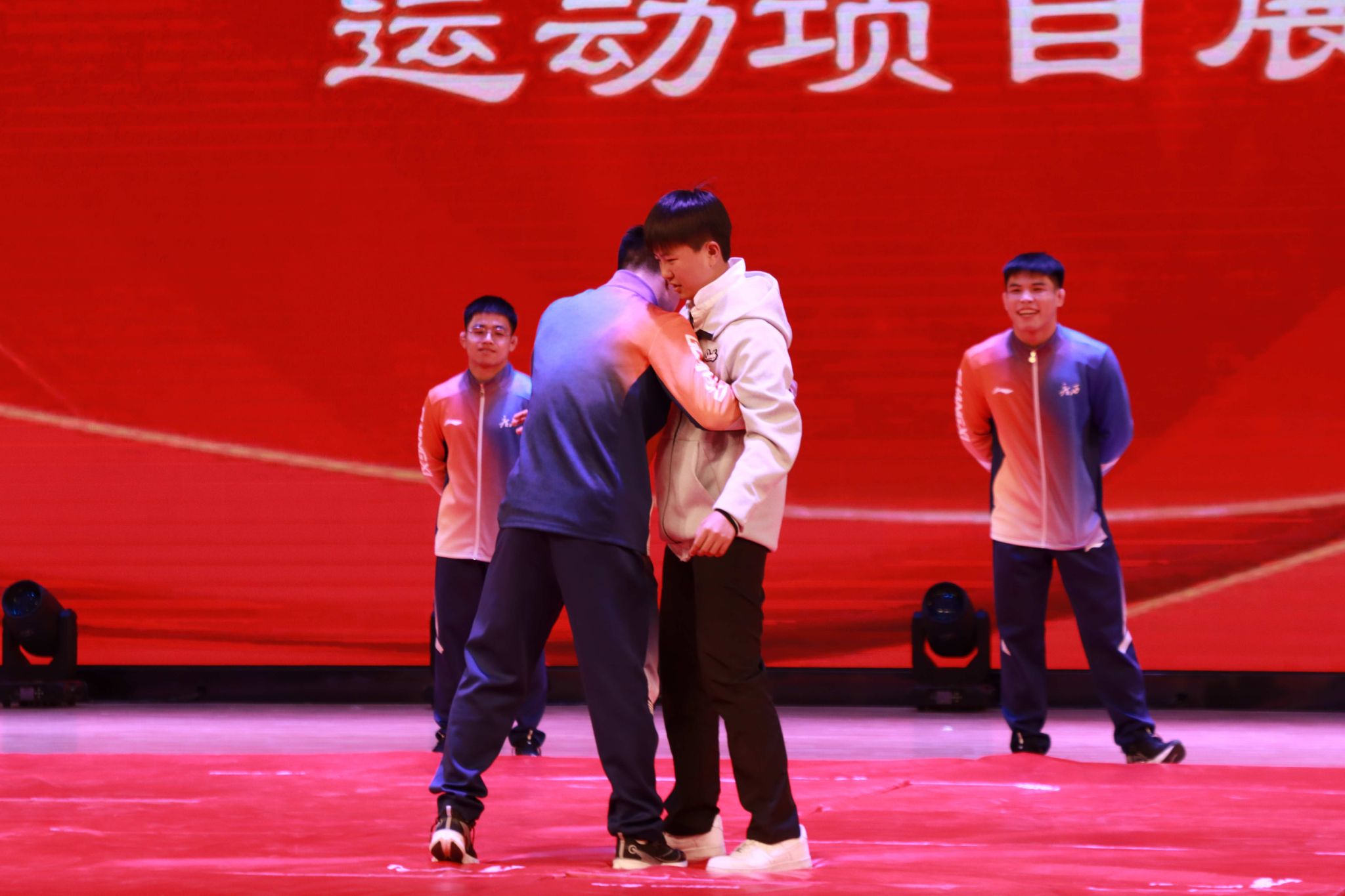 在宣讲环节,各位冠军以真实感人的经历,生动诠释了体育精神的深刻内涵。古典式摔跤巴黎奥运会亚军、第十五届全运会冠军曹利国,深情回顾了自己从入选国家队到征战奥运的十余年奋斗历程。他表示,摔跤就像人生的一道缩影,摔倒不可怕,重要的是能更快地爬起来。他鼓励学子在学习和生活中保持自律、坚持与感恩。