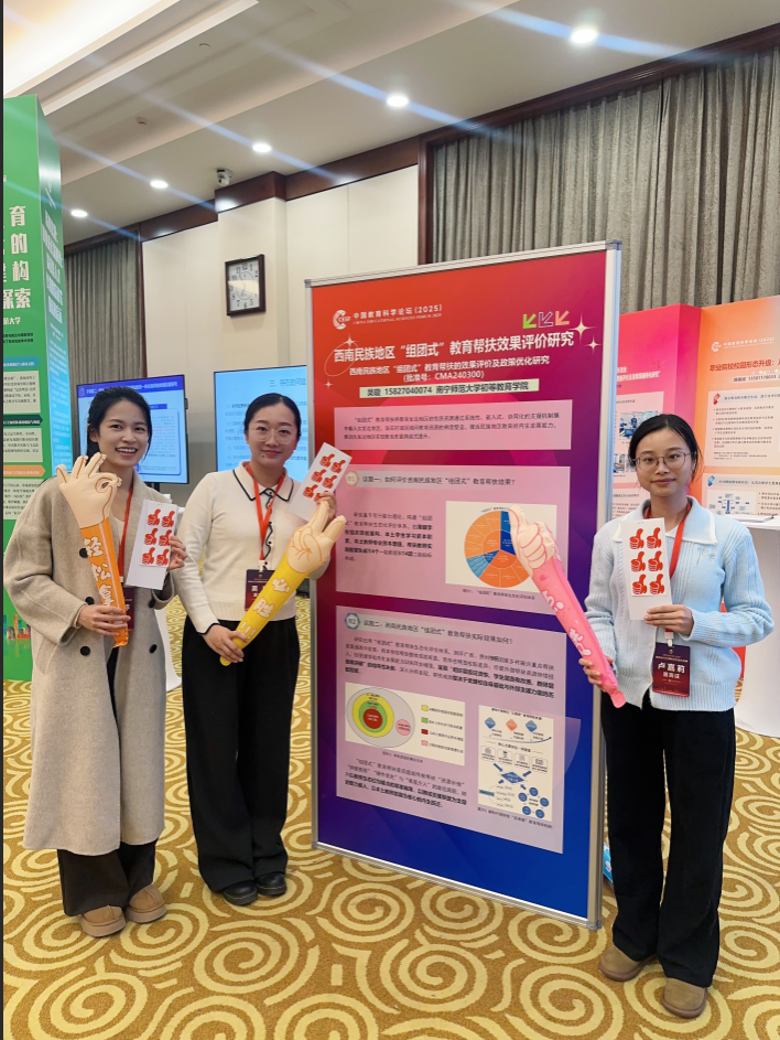 问鼎手机版初等教育学院“西南民族地区‘组团式’教育帮扶的效果评价及政策优化研究”课题组应邀出席“教育公平圆桌对话”平行模块,并参与学术海报专场。学术海报专场活动紧扣“智能时代中国教育学知识重建”核心主题,通过海报展示、学者演讲、互动交流与专家评选等多元形式,引发了与会学者的积极对话。课题组在学术海报活动现场展示了《西南民族地区“组团式”教育帮扶效果调查》的阶段性研究成果。