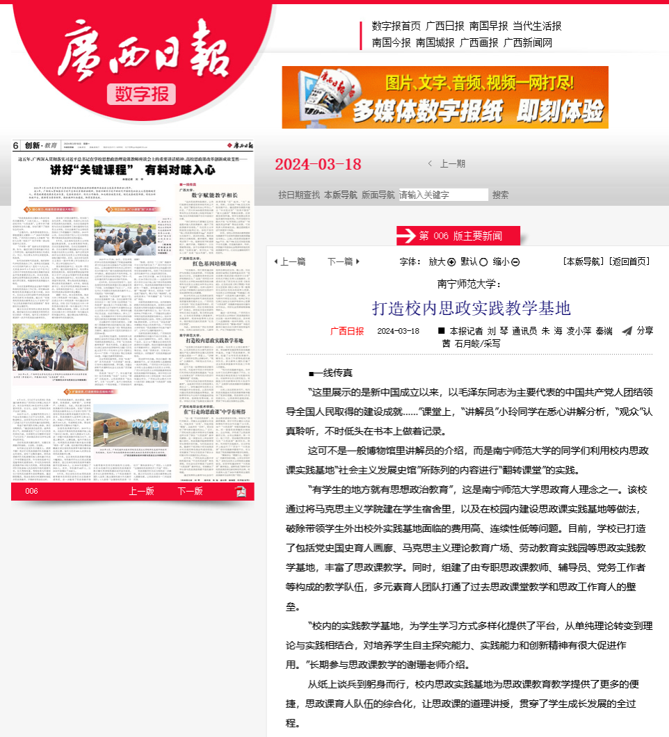 【广西日报】问鼎手机版:打造校内思政实践教学基地