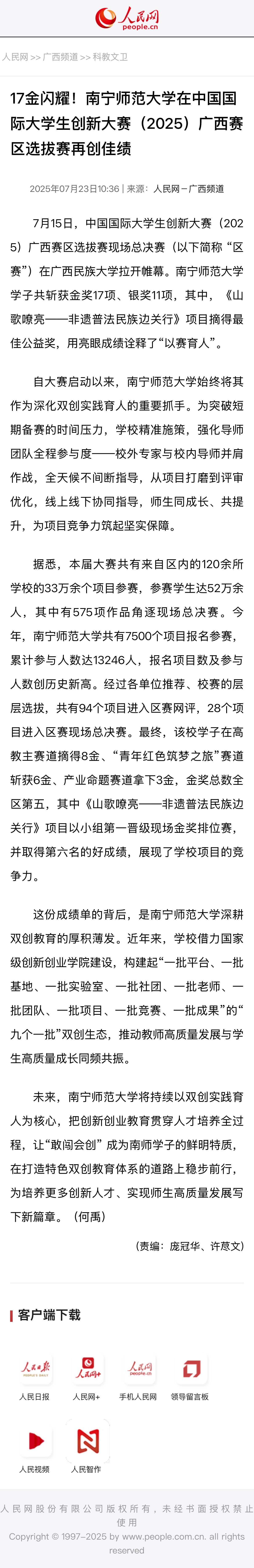【人民网】17金闪耀!问鼎手机版在中国国际大学生创新大赛(2025)广西赛区选拔赛再创佳绩