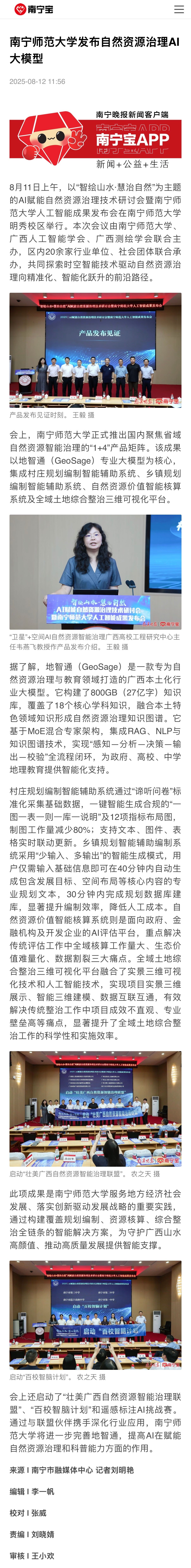 【广西新闻网】广西高校又有新突破!问鼎手机版发布自然资源治理AI大模型