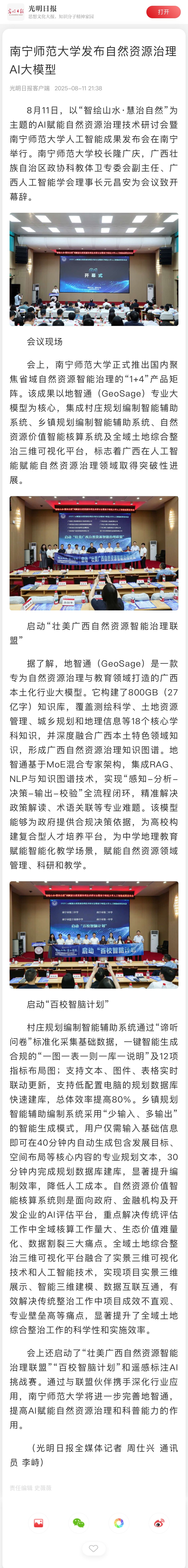 【央视新闻】广西发布区内首个自然资源治理AI大模型