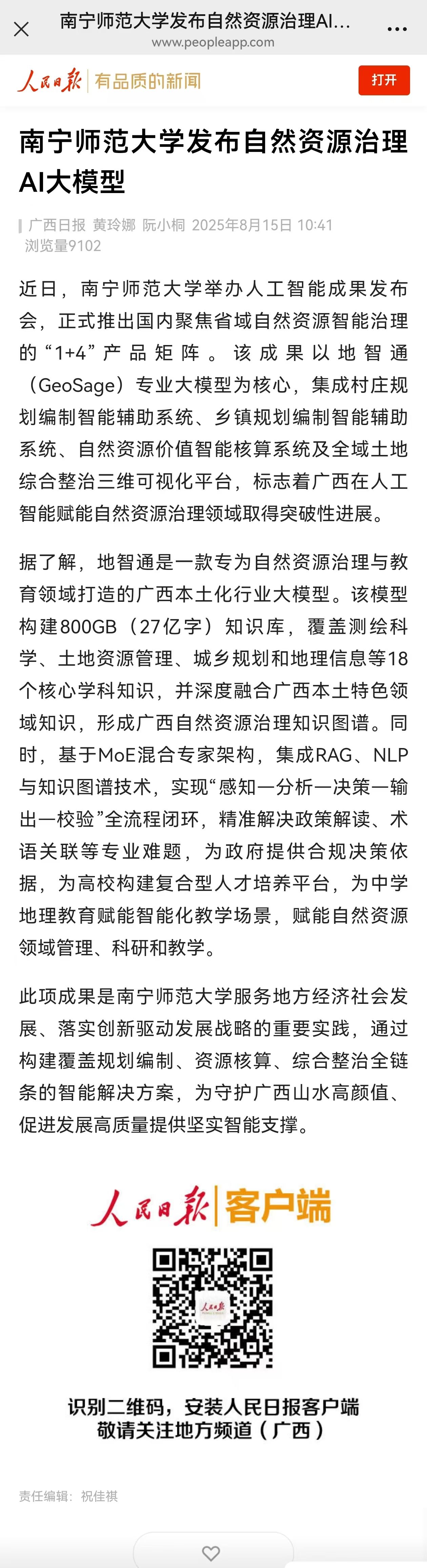 【广西云-广西日报】广西高校又有新突破!问鼎手机版发布自然资源治理AI大模型