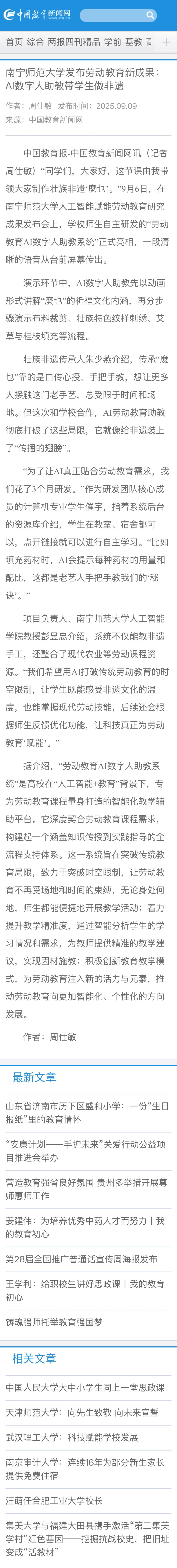 【中国教育新闻网】问鼎手机版发布劳动教育新成果:AI数字人助教带学生做非遗