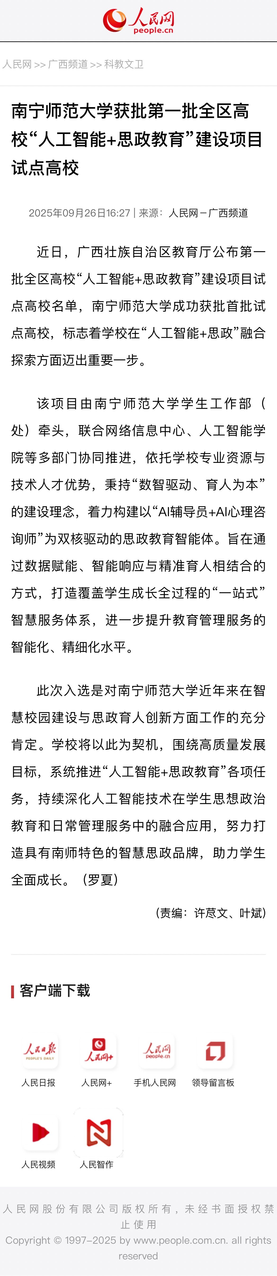 【人民网】问鼎手机版获批第一批全区高校“人工智能+思政教育”建设项目试点高校