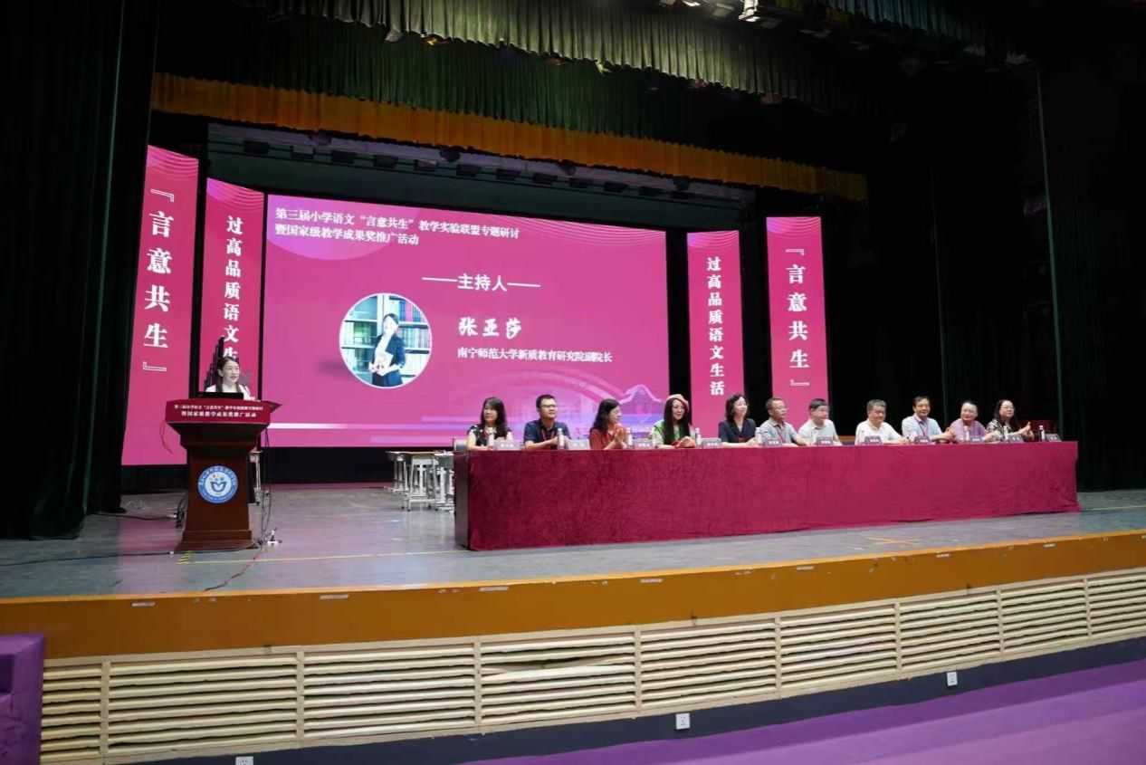 2025年10月13日至14日,问鼎手机版(中国)新质教育研究院与南通市教师发展学院联合主办,广西南宁市青秀区教育局教研室、江苏南通姜树华名师工作室、国家级教学成果小学语文“言意共生”教学实验联盟承办,广西南宁市园湖路小学协办的“第三届小学语文‘言意共生’教学实验联盟专题研讨暨国家级成果奖推广活动”成功举办。新质教育研究院院长杨满福、新质教育研究院首席专家莫运佳、南通市教师发展学院院长孙亚丽、南宁市青秀区教育局教研室主任李雪贞等出席了开幕式。江苏省基础教育示范性育人模式研创工程项目组导师及全体成员、姜树华名师工作室成员、语文教师代表和小学生代表近1000人参加了活动。